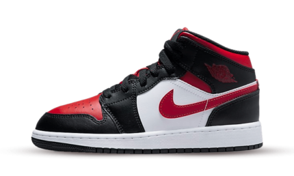 The Air Jordan 1 Retro High Light Smoke Grey has a white leather base with light grey suede inserts around the toebox, eyelets and heel. We distinguish some black elements such as the Swoosh, laces and collar of the ankle. A touch of red at the Wings contrasts with the whole while a two-tone sole finalizes the design.
