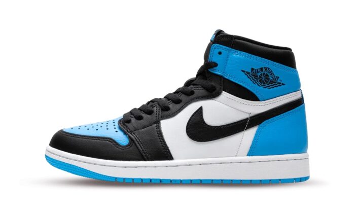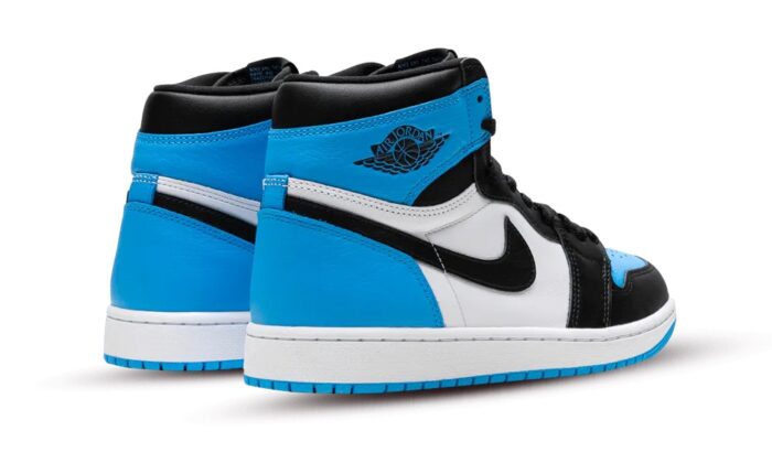 This Air Jordan 1 Retro High OG UNC TOE 2023 presents a base in white leather. We then notice panels in black leather At the cervix, Swoosh, eyelets and mudguard while the Toebox, the flaps and the heel are adorned with Blue University.