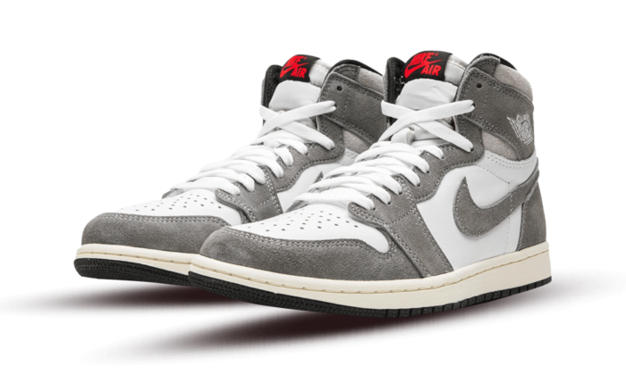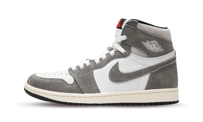 The Air Jordan 1 Retro High OG Washed Black features a white leather base with gray suede overlays. Its special feature is a cream midsole with vielli effect. A black outsole completes the original look.