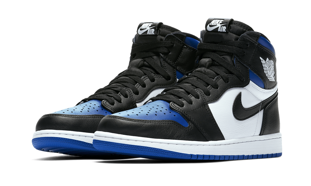 The Air Jordan 1 Retro High Royal Toe features a leather upper, alternating white on the quarter panel, the inevitable royal blue hue at the toebox and ankle and black on the rest of the pair. We note the classic branding with the Wings logo and the tag ” Nike Air ” on the tongue. The design of this AJ1 is completed on a two-tone sole to stick to the original version.