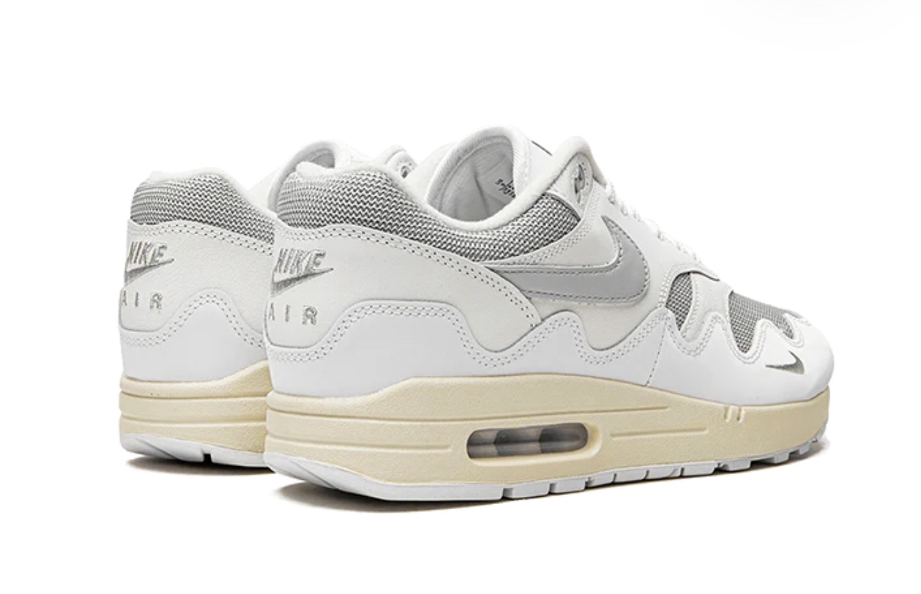 The Nike Air Max 1 Patta White Gray presents a base in gray mesh supplemented by overlays of White leather with cracked details. We find in particular the famous waves in the shape of waves, signature of the collection. A mini-swoosh as well as a cream sole finalize the design refined.